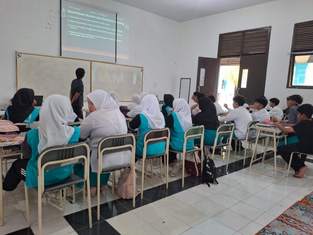 Dalam penyampaiannya, Muhammad Dzikrullah menjelaskan bahwa komputer memproses data dalam bentuk angka-angka yang disusun seperti matriks, misalnya dalam pengolahan gambar, kecerdasan buatan, grafik komputer, dan sistem enkripsi. Ia menunjukkan contoh konkret bagaimana sebuah gambar digital sebenarnya merupakan kumpulan besar nilai pixel yang berbentuk matriks. Penjelasan ini membantu peserta didik memahami bahwa materi matriks bukan sekadar teori abstrak, melainkan sangat dekat dengan teknologi yang mereka gunakan setiap hari.